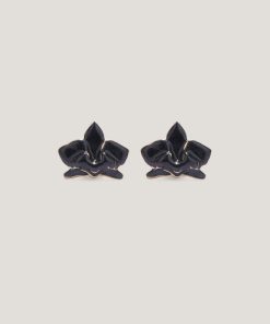 These clip-on earrings feature a delicate orchid motif, enameled in a dark shade that adds a touch of elegance and modernity. Expertly crafted in Italy, they combine a three-dimensional design with a glossy finish, enhancing facial beauty with a refined accent. Perfect for completing both daytime and evening looks, these earrings are the ideal accessory for those seeking jewelry that expresses femininity and character. A versatile and distinctive piece that adds a touch of contemporary luxury to any outfit.