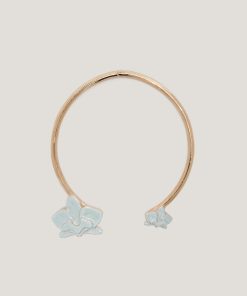 This elegant necklace is adorned with delicate orchids at both ends, crafted in polished brass that beautifully reflects the light. The minimalist design adds a touch of sophistication to any look, while the subtle floral detail brings a unique and feminine touch. The open-ended structure makes it easy to wear and style, perfect for both day and evening looks.