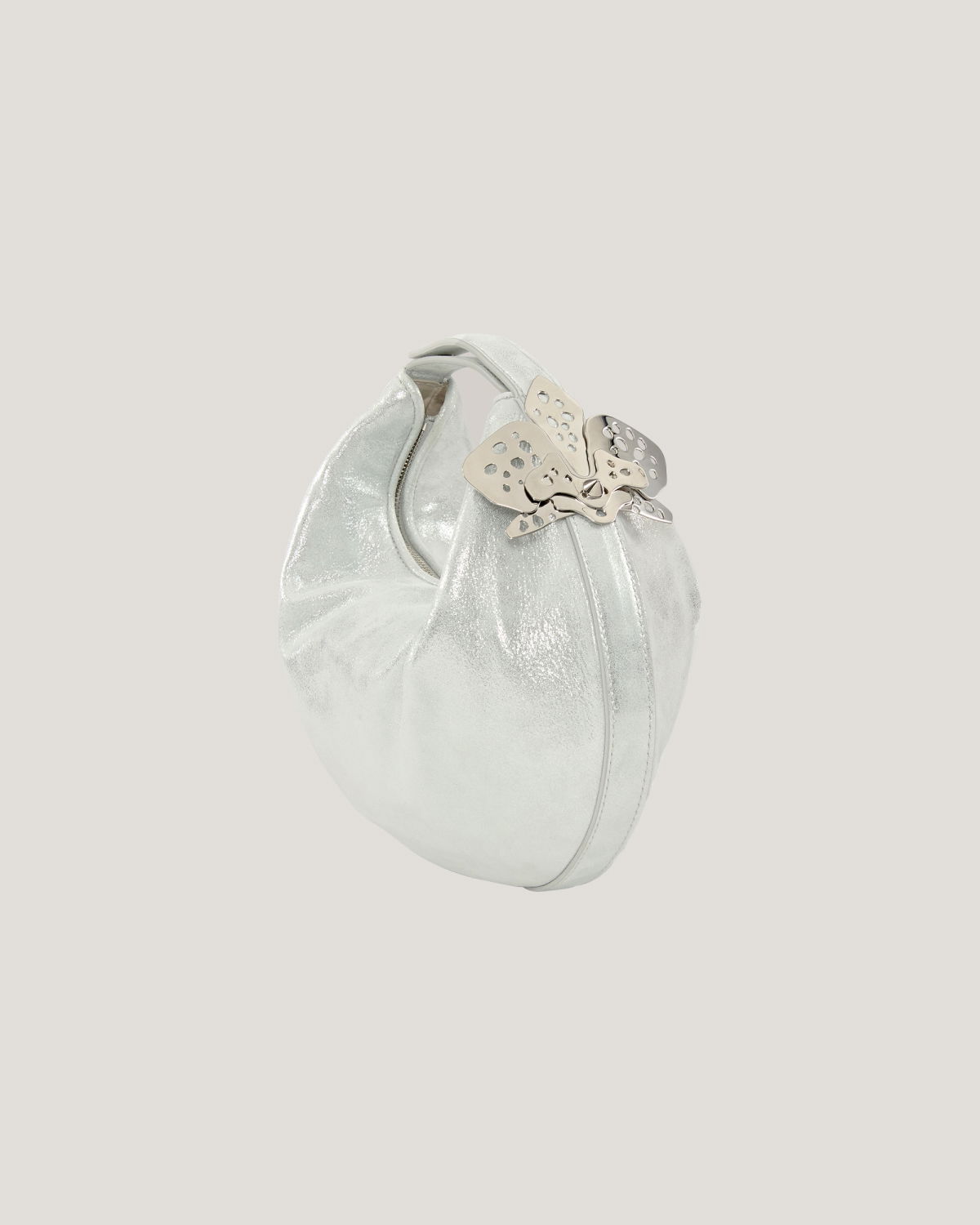 The Fortune bag is a design masterpiece; this model crafted in laminated leather embodies the self-confidence essence of Genny’s identity. It is characterized by a metal orchid embellishment.