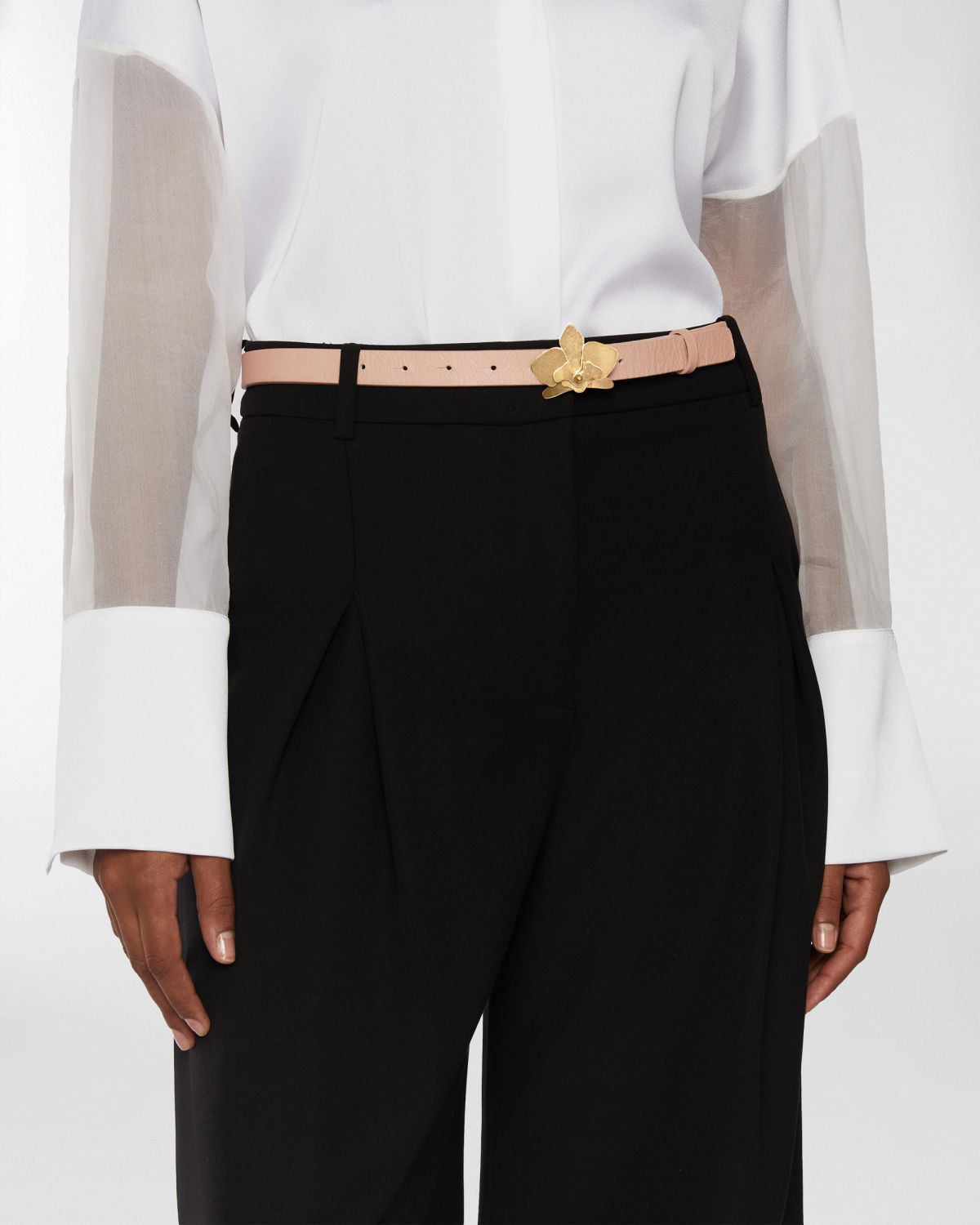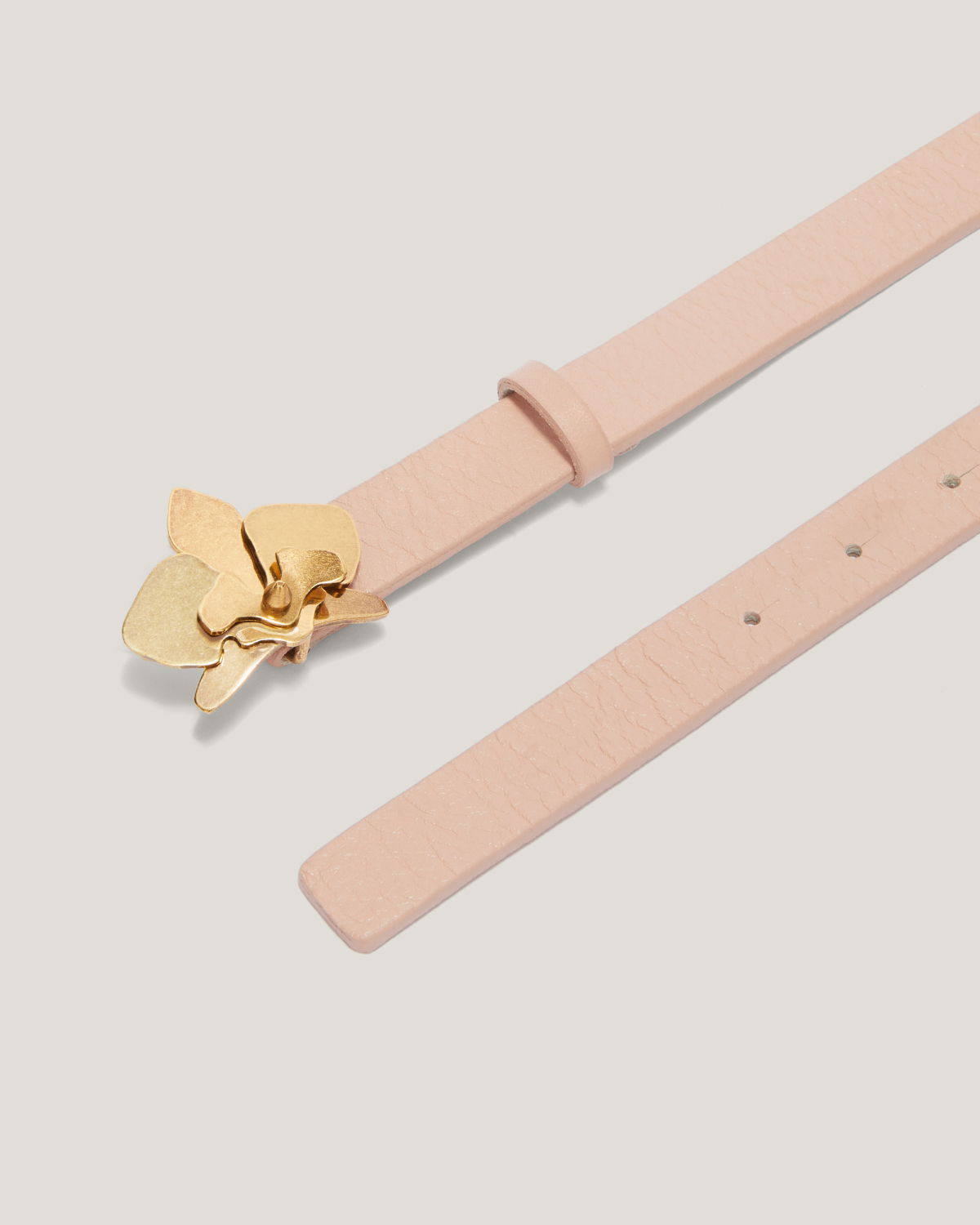 Soft belt adorned with a brass Orchid plaque, adding a refined and distinctive touch. Its minimalist and versatile design makes it ideal for complementing various outfits, from casual to elegant. Perfect for those who desire an exclusive and classy accessory.