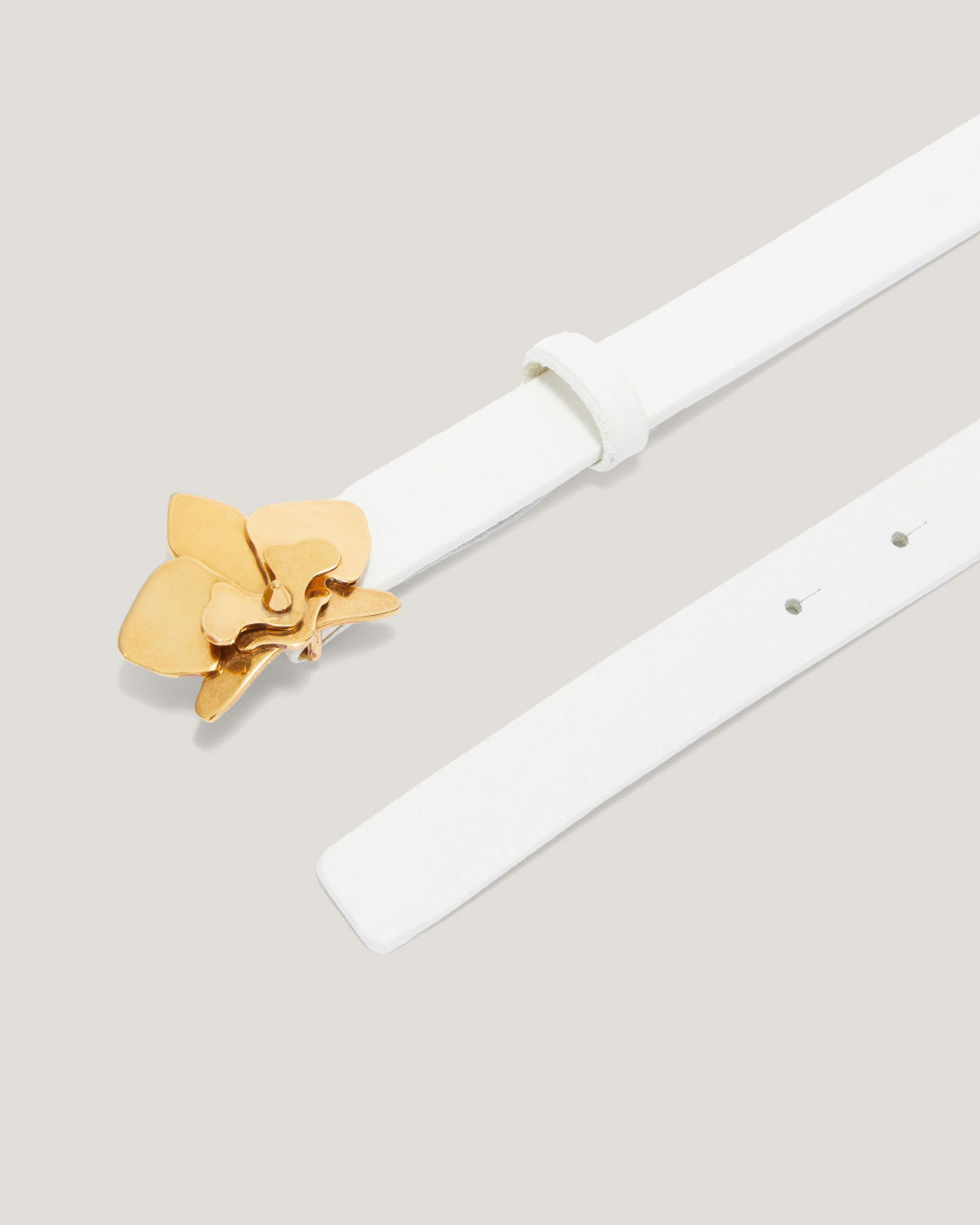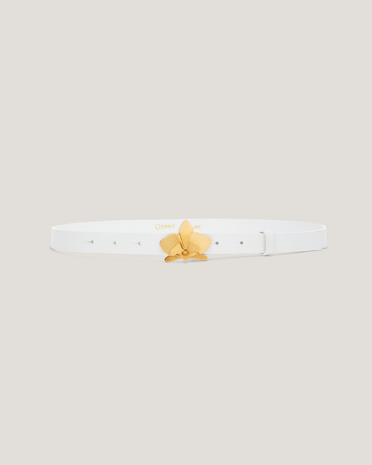 Soft belt adorned with a brass Orchid plaque, adding a refined and distinctive touch. Its minimalist and versatile design makes it ideal for complementing various outfits, from casual to elegant. Perfect for those who desire an exclusive and classy accessory.