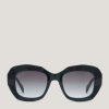 With their feminine and easy-to-wear style, the square sunglasses are great to pair with any look. The temples start with Genny orchid symbol that gives this piece an iconic twist. Moreover, the temples are surrounded by an elegant golden profile. The lenses gradually change colour from blue to white. Golden Genny logo completes the temple tips.