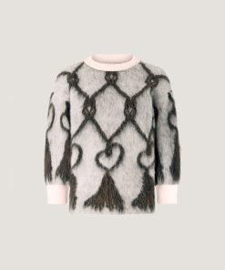 This crew-neck pullover features a regular fit and hip-grazing length, crafted from pure wool that lends a soft, airy texture. The pattern evokes the effect of tassels, reinterpreting a vintage symbol of the Maison. Sleeves that fall above the elbow add a modern touch to a piece that blends comfort and style.