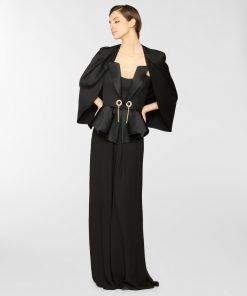 This bralette top is crafted from stretch mesh and enriched with all-over rhinestone and pearl embroidery, offering luminous allure and charm. The essential silhouette is elevated by a signature three-dimensional plaque closure, evoking the Maison iconic orchid. Ideal worn under a sophisticated blazer or as the statement piece of a bold yet refined evening look.