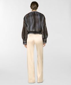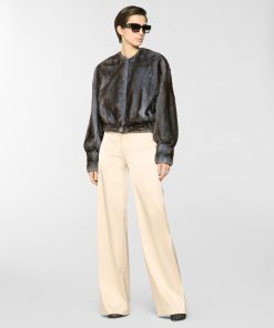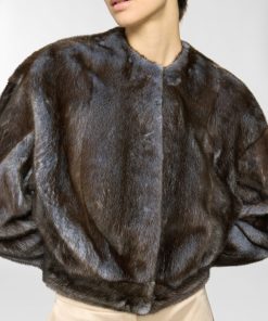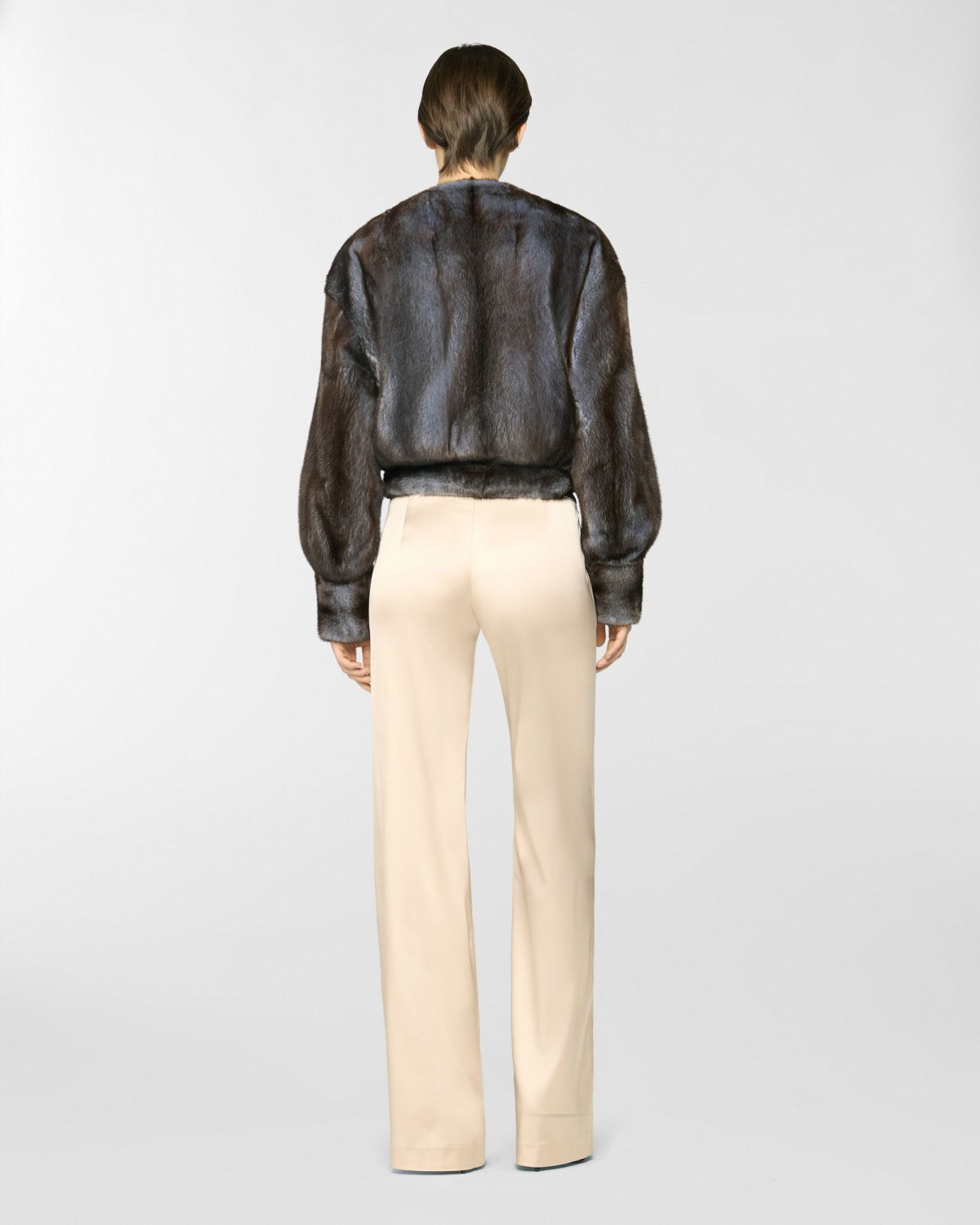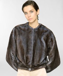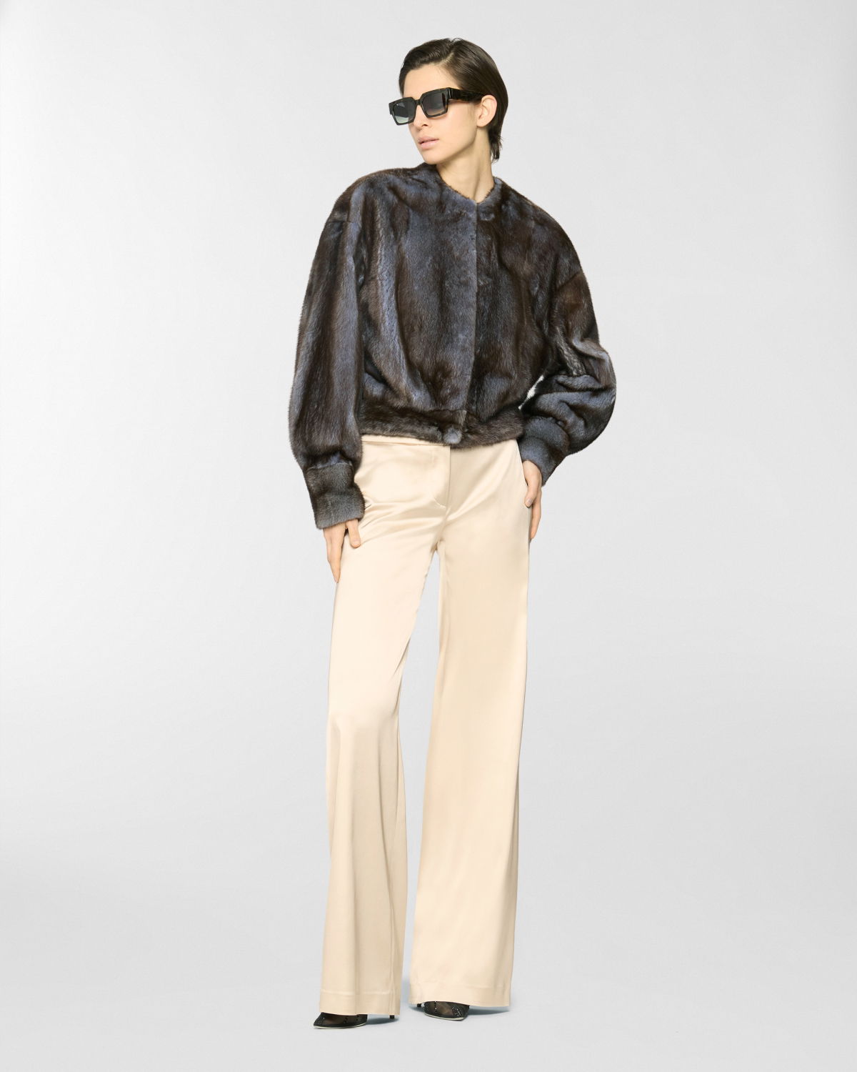 Mink fur outerwear featuring a soft silhouette, long voluminous sleeves, a clean crew neckline, and elasticated details at the cuffs and hem that gently define the waist. A versatile piece, perfect for both everyday looks and elegant evening ensembles.