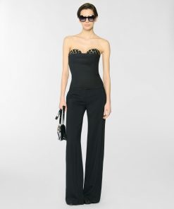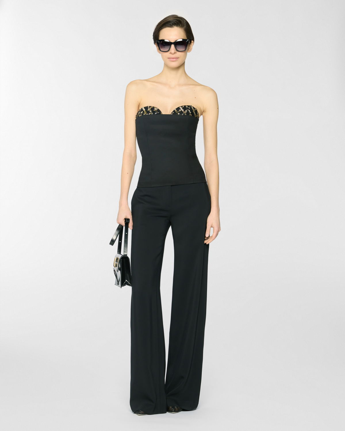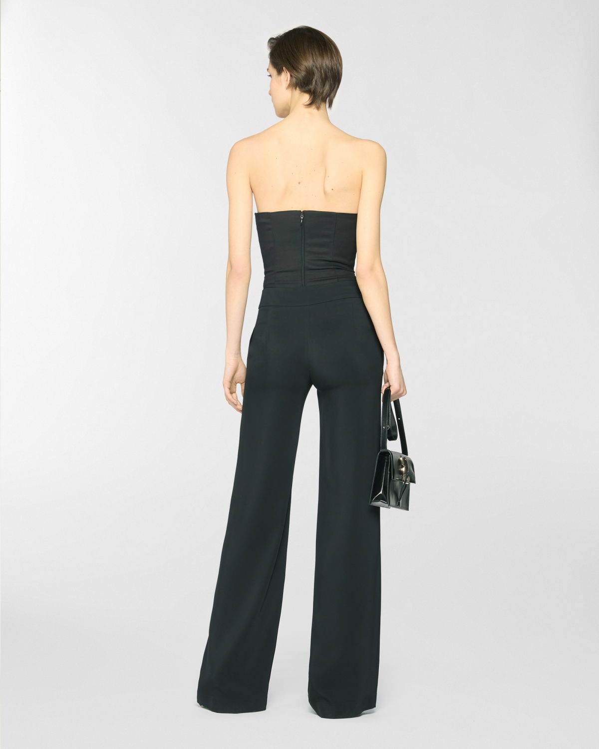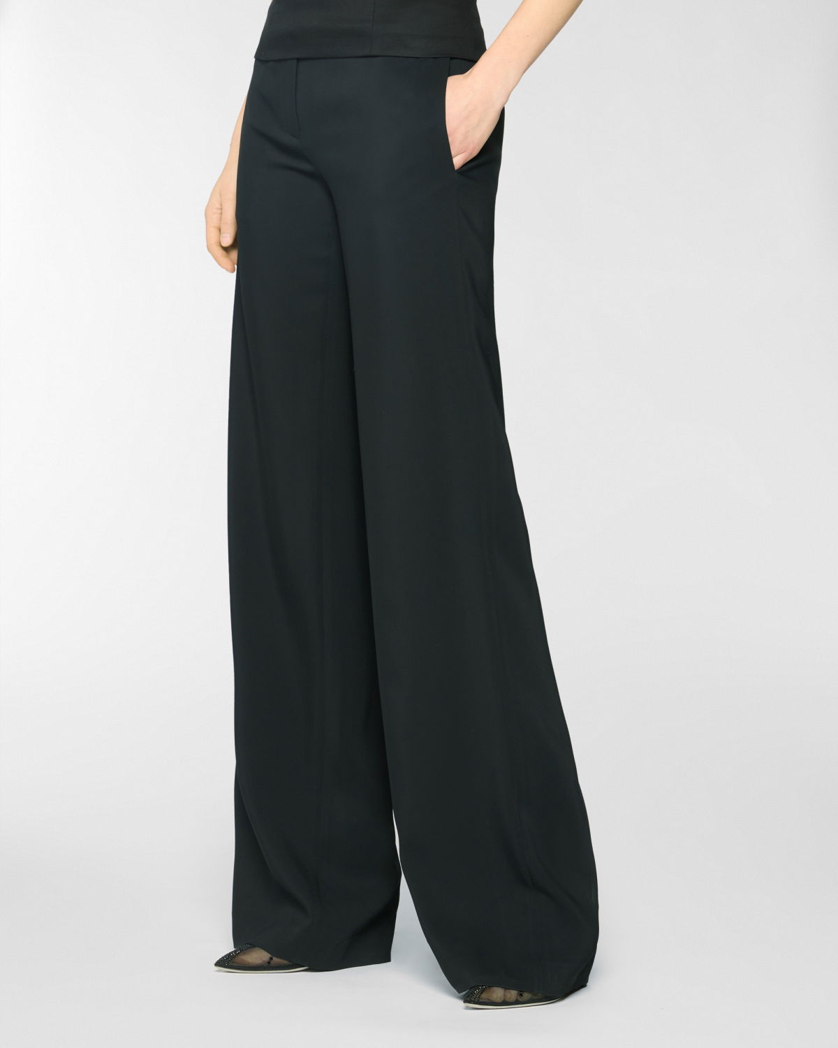 Wide-leg trousers crafted from Rossana cady, defined by a fluid and voluminous silhouette. The high-rise waistband and back pleats enhance the tailored construction, while side slit pockets add practicality without compromising elegance.