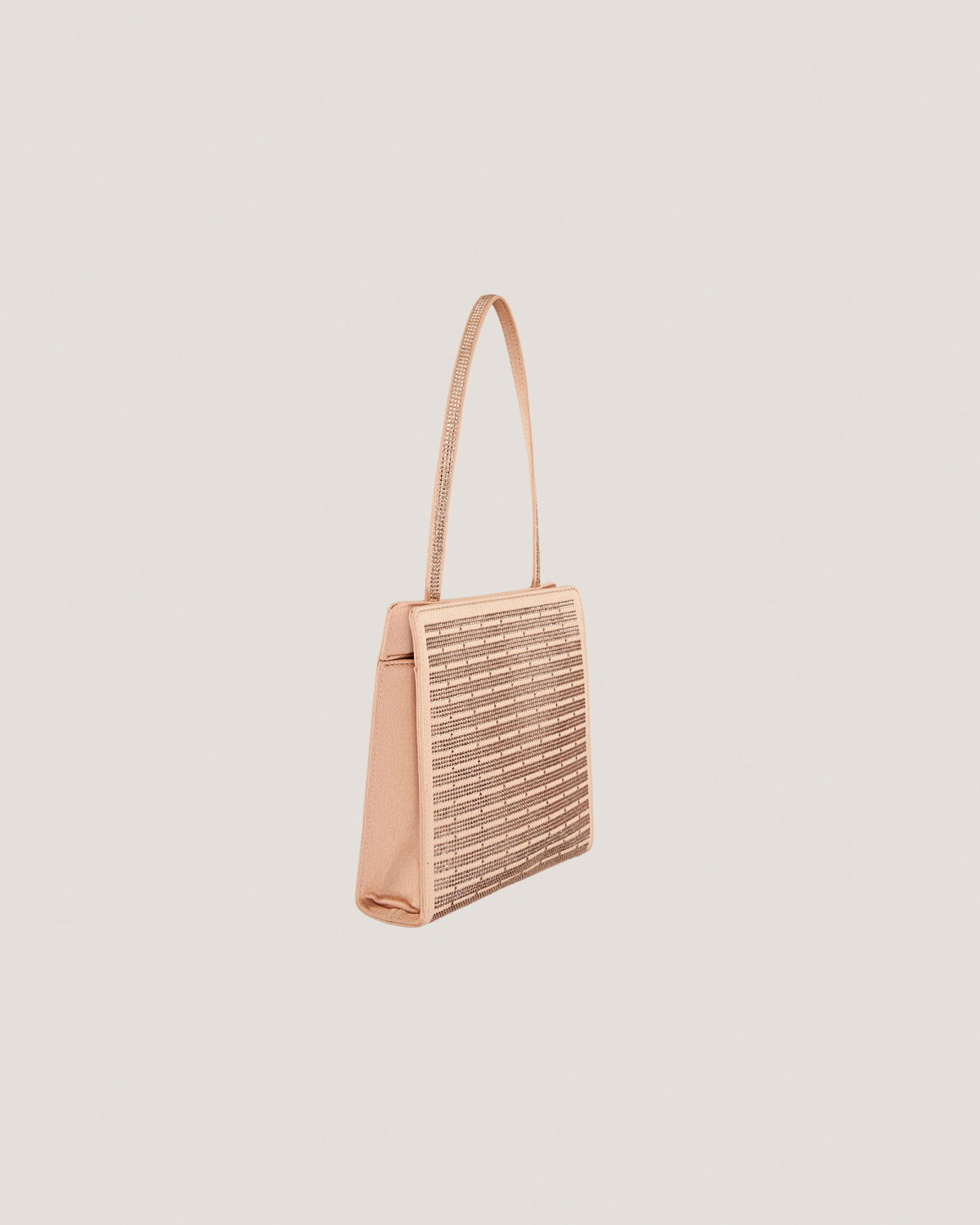 This bag stands out for its sophisticated and modern elegance, enhanced by sparkling rhinestone details that add a touch of glamour. The sleek design features a compact rectangular shape, perfect for carrying your essentials in style. The shoulder strap, crafted from leather with rhinestone accents, offers comfortable and chic wear, making it ideal for special evenings and occasions when you want to shine. Expertly crafted, this bag combines the elegance of satin with the brilliance of rhinestones, delivering a refined and distinctive look.