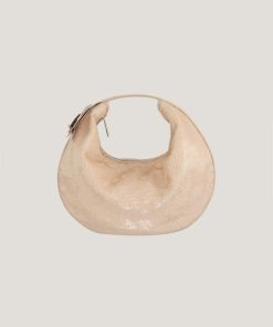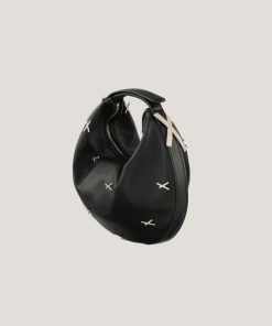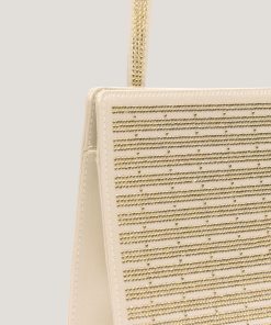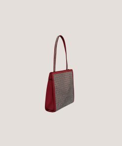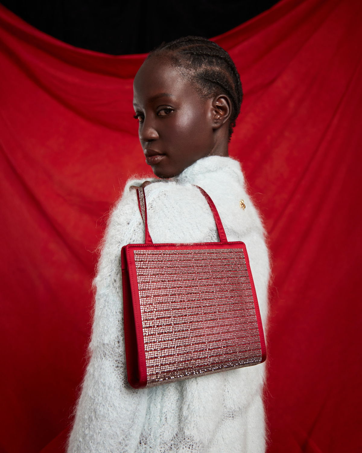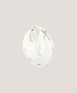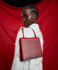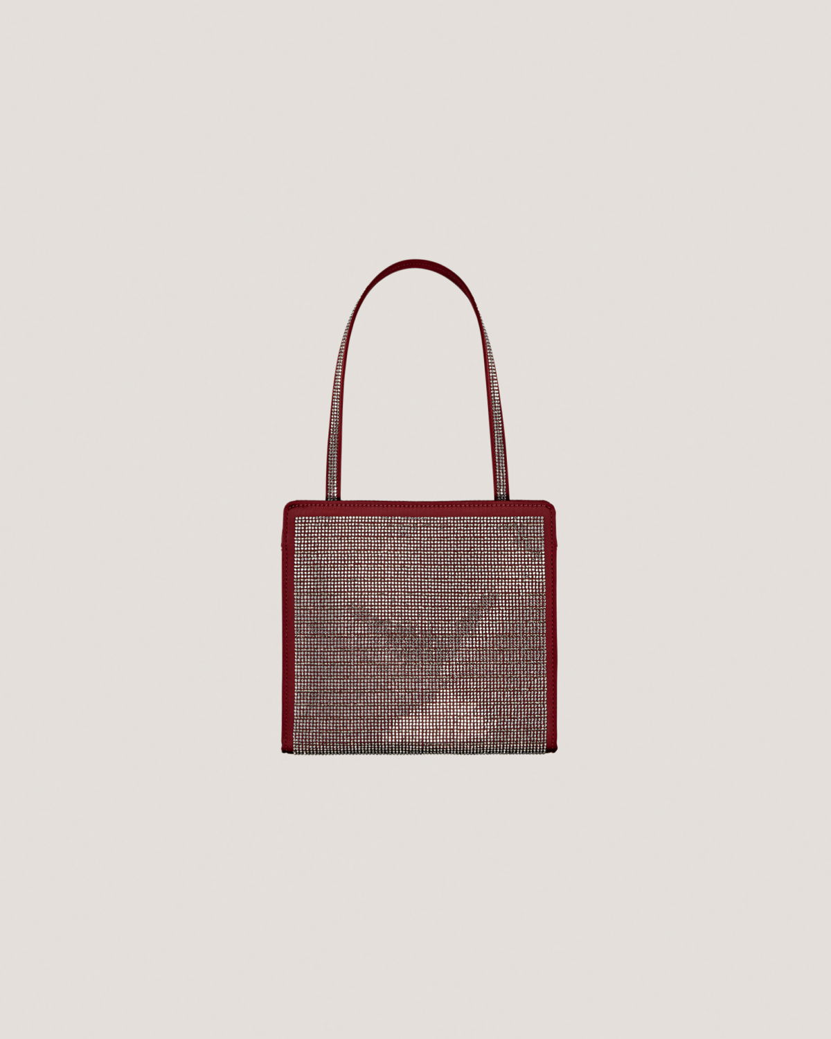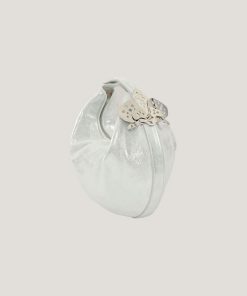This satin hand bag is distinguished by its sparkling details, making it an elegant and sophisticated accessory, perfect for adding a touch of glamour to any outfit. Crafted in satin, its sleek structure is enhanced by a front panel adorned with shimmering crystals that catch the light with every movement, adding brightness and charm.