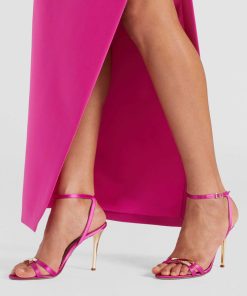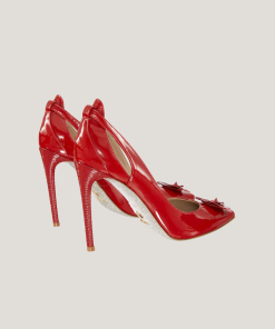Slingback pumps with a low heel that combine elegance and modernity. Crafted in transparent mesh with leather trims, they are embellished with embroidery and luminous applications of pearls and crystals, creating a refined graphic design. The kitten heel adds comfort and versatility, making them perfect for evening looks or special occasions.