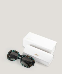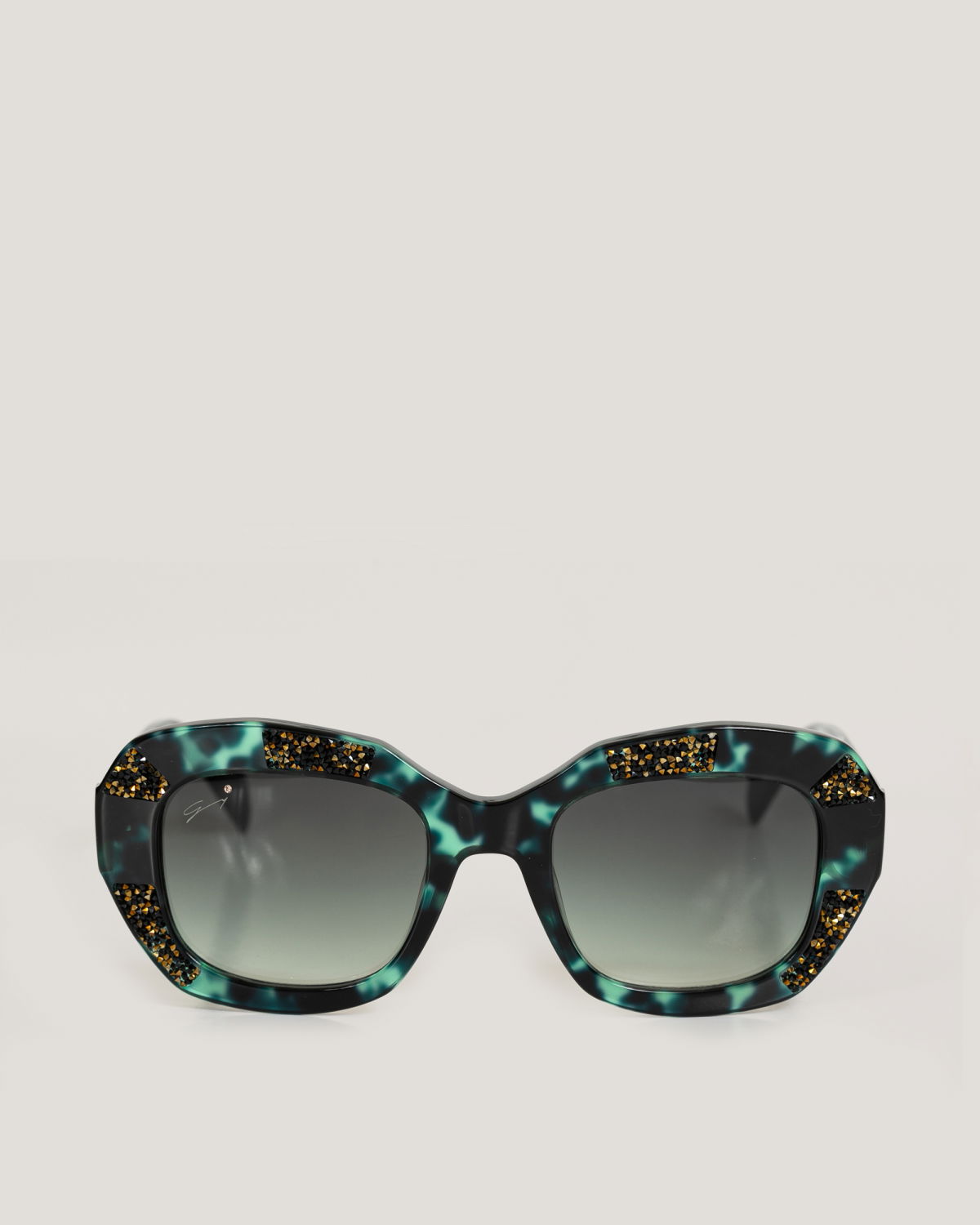 These sunglassess are crafted in an elegant black with sparkling details, these slightly rounded geometric-shaped sunglasses feature a modern and feminine design. The gradient lenses add a touch of softness, while the temples showcase a gold metal detail with the Maison’s name